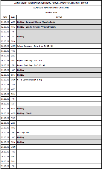 © 2025 Annai Violet International School | Disclaimer: This website makes use of Cookies to enhance visitor's user experience