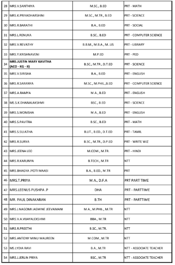 TEACHING STAFF DETAILS